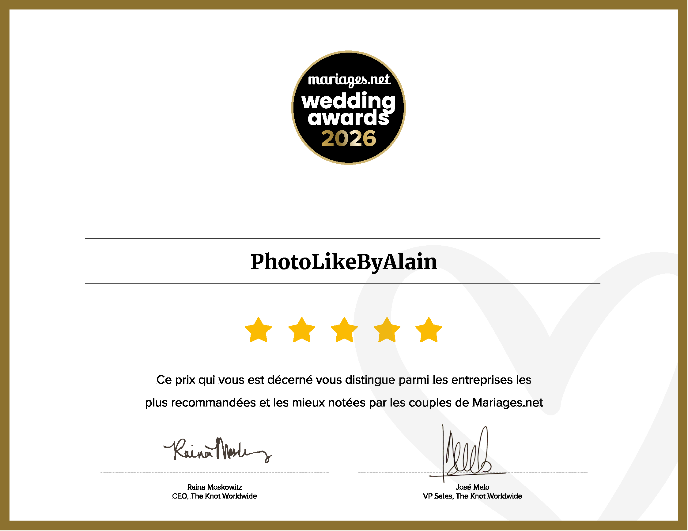 « Nous sommes plus que des photographes, nous sommes des conteurs d’histoires d’amour. Merci de nous permettre de faire partie de la vôtre.